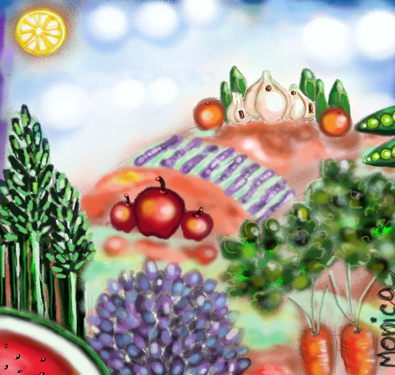 Recently, among many of my friends there’s been lots of talking about juice dieting and today, by sheer coincidence, I found an artist who does foodscapes. I was impressed by his work and I wanted to create something in the same spirit. This is my humble attempt. Enjoy your juice!