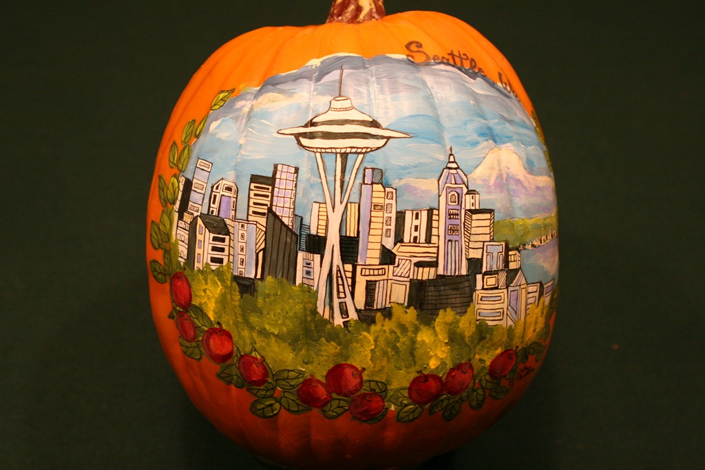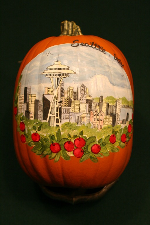 When I first moved to the United States, twelve years ago—can’t believe it has been so long already—I was exposed to the American art of pumpkin carving and decorating. Once I painted my first pumpkin, I realized I didn’t want for it to go to waste and be forgotten. So I started buying foam pumpkins to paint them with acrylics. Since then, every fall I paint at least one pumpkin—usually around three or four. Now, I have quiet a collection lying around the house all year long. Here are a few pictures of some of my special pumpkins.