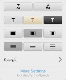On the side you can see an example of the text appearance dialog for Amazon’s Kindle Fire