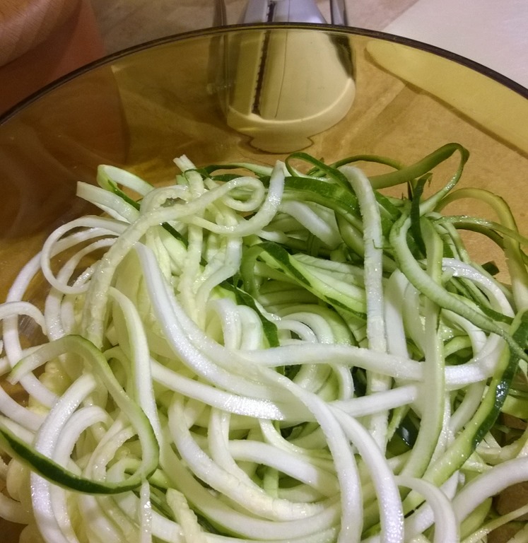 To avoid becoming a blob of unsatisfied author, I decided to invest in one of those kitchen gadgets that turn vegetables like zucchini and carrots into long strings of spaghetti-like creations. Must say I’m quite pleased with my decision.