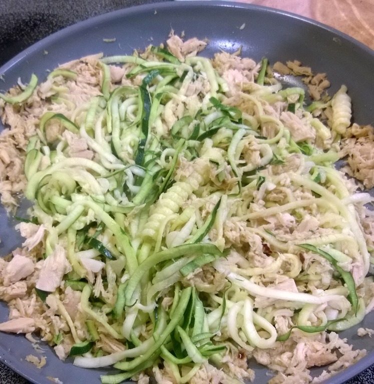 I cooked the strings of zucchini as if I were making regular pasta, in a pot of boiling and salted water, but I rinsed it after a minute, and added the spaghetti to the tuna sauce. I checked the salt, added a tablespoon of evoo and brought it to the table. The dish was very satisfying and I’ll try different sauces next time.