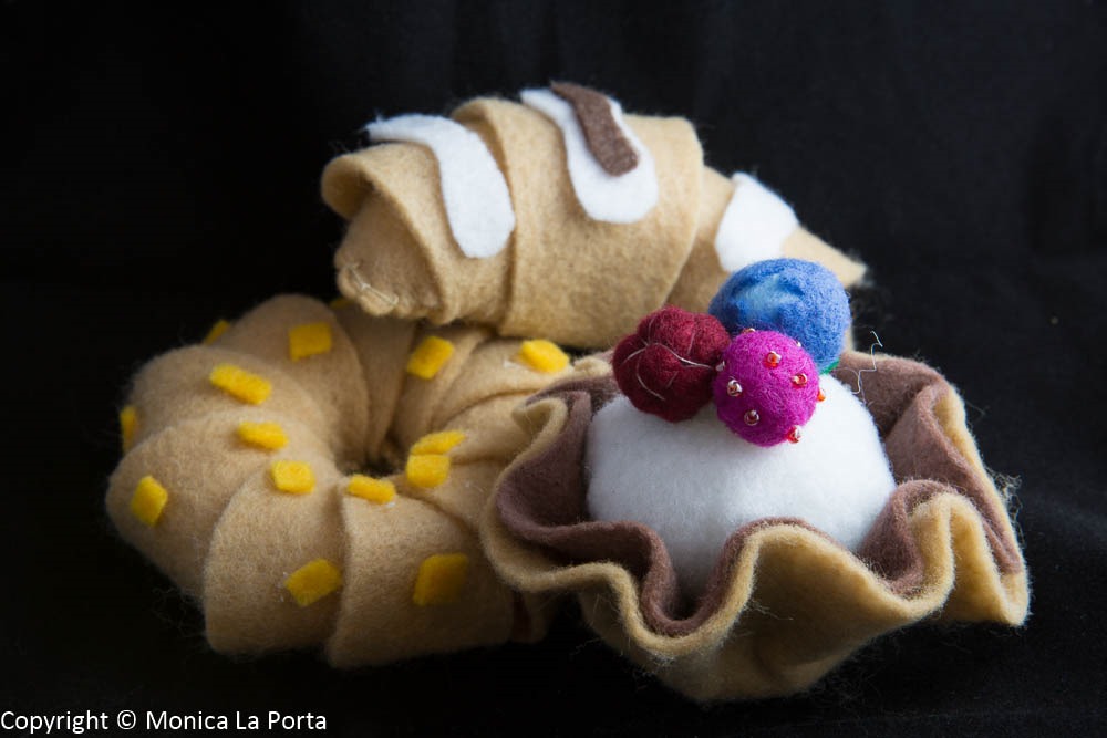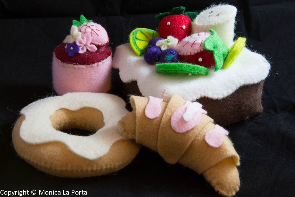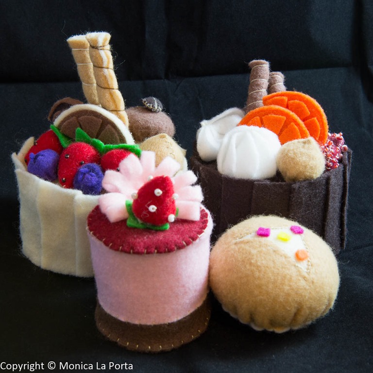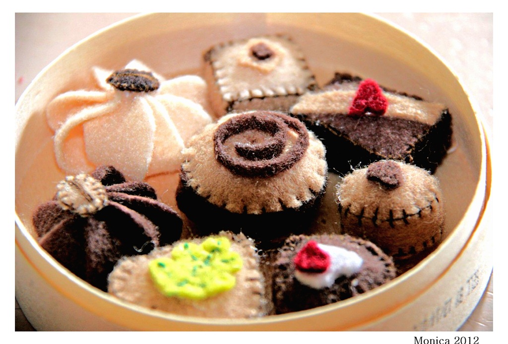 A few years ago, I discovered the wonderful world of felt craft a` la Japanese. Instantly hooked. Eventually, I made several dozen decorations all dessert and sweets themed to decorate the Christmas tree.