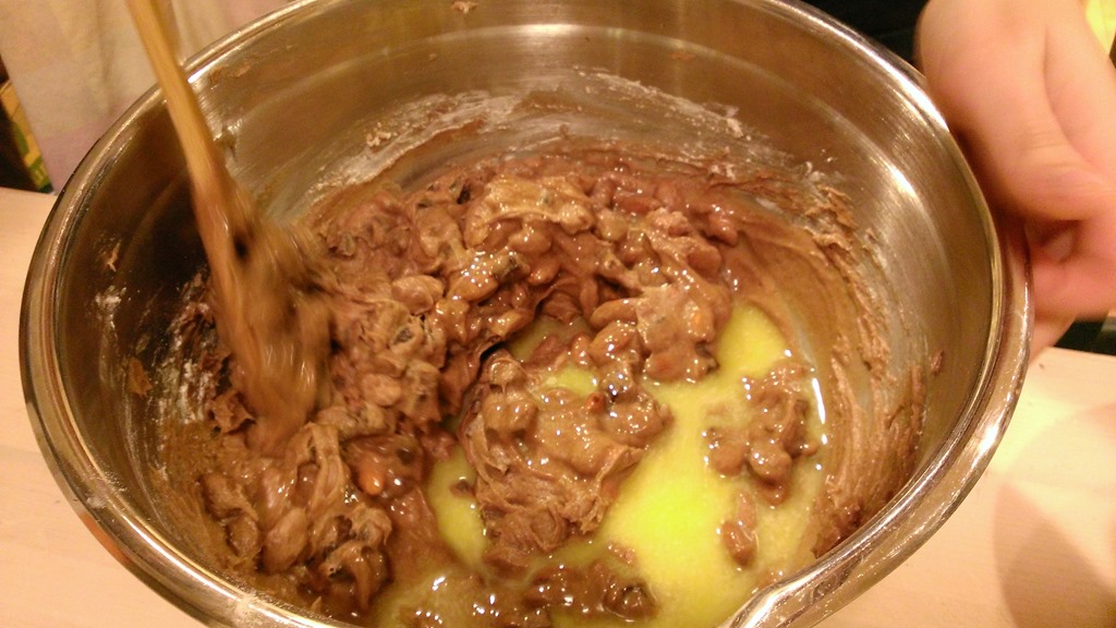 Meanwhile, I sautéed a clove of garlic in a pan with two tablespoons of evoo, added two cans of tuna (it was too much for only two zucchini), salted it, and let the sauce sauté for a few minutes.