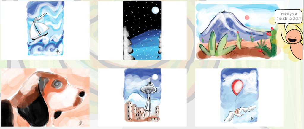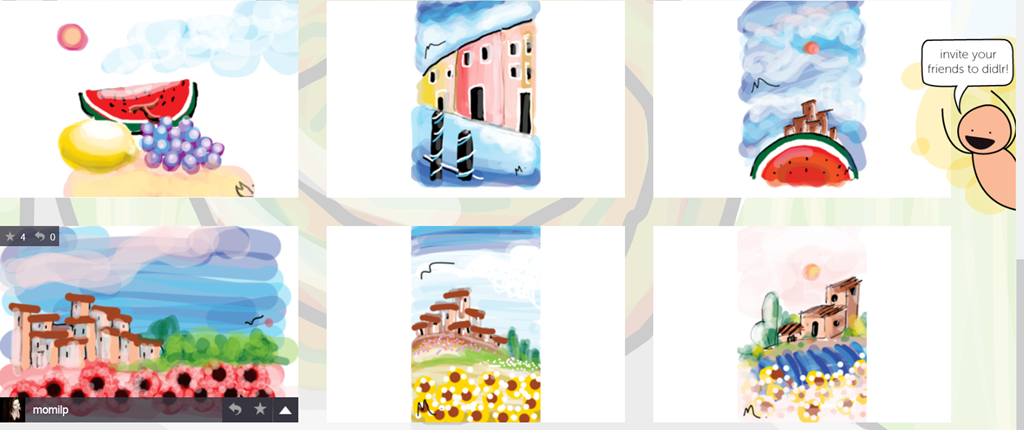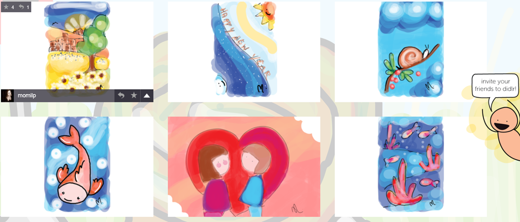 If you don’t, you should. My husband showed me this fun app, didlr, a few days ago and I got hooked right away. Didlr is easy to use and it has a social aspect to it that makes it even more fun. I’ve been playing with it on several devices and the one I prefer to work with is my Windows Phone. Although didlr on Windows Phone has less functions than on the Surface and iPad, I’ve created several didls on it and I’m quite happy with the results. Didlr’s palette is bright and there’s this functionality to make the colors see-through which adds a lot to the experience. Once you publish your freshly-made didl, it goes on the didl stream where didlers can vote for it if they so fancy. You can also follow and be followed by other didlr’s enthusiasts, and even answer to their didls with one of yours. Just one glance at the didl stream and you’ll be amazed by the sheer talent out there. And lastly, probably the cooler feature is that didlr replays step by step all the actions you took to create your priceless work of art. Below are some of my didls. One of them cost me a peach cobbler. I was having too much fun drawing and the cobbler suffered irremediable damages. Nobody ate it, but I showed the friends who had invited us for dinner—and who were expecting the cobbler—my masterpiece. Rhapsody in White (which I created on my Surface and I realize now, I also misspelled) received mixed reviews. The Muse is a cruel mistress… By the way, I didl as momilp. See you there!