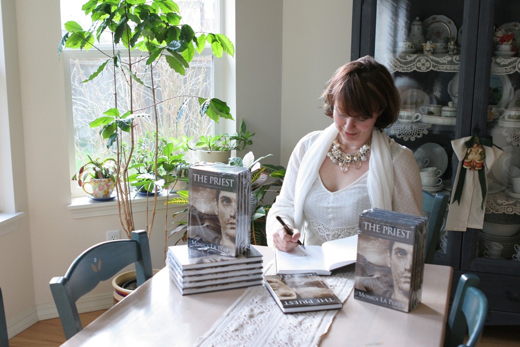 For my birthday, my DH surprised me with 20 hard copies of my novel. He worked with Alessandro to get the cover printed right and the final result is a work of beauty. When I uncovered the pile of books DH had carefully arranged on the kitchen table, I felt pure joy. Looking at the shiny cover made me ecstatic, but when I actually held a copy in my hands, I had an out of body experience. This is what happiness looks like: